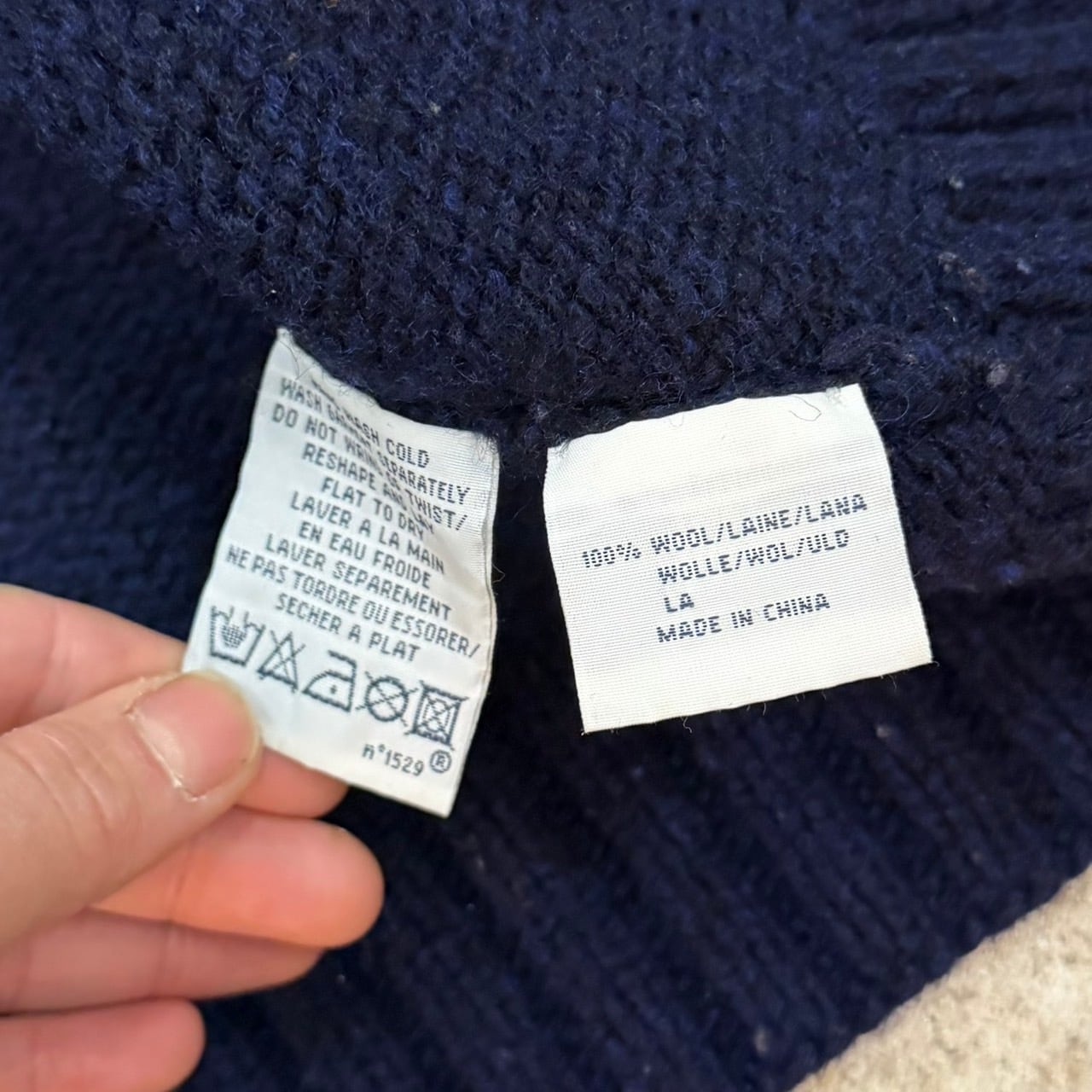 ネイビーベース×白のカラーリングも上品で、黒も混ぜた編み込みのおかげで出てくる高級感。