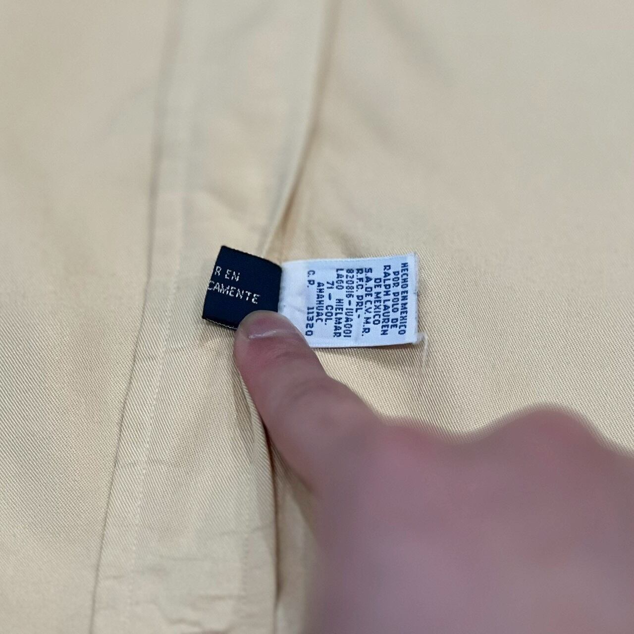 珍しい表記とループ襟が多い中レギュラーカラーでこの素材。